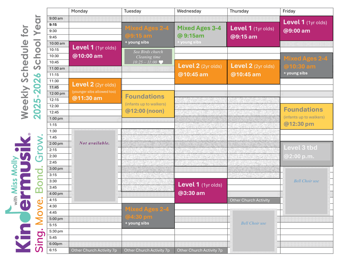 NOTE: During the summer, the studio will host several themed Musical Playdates, which vary from year to year. Check back here in May to see it posted.